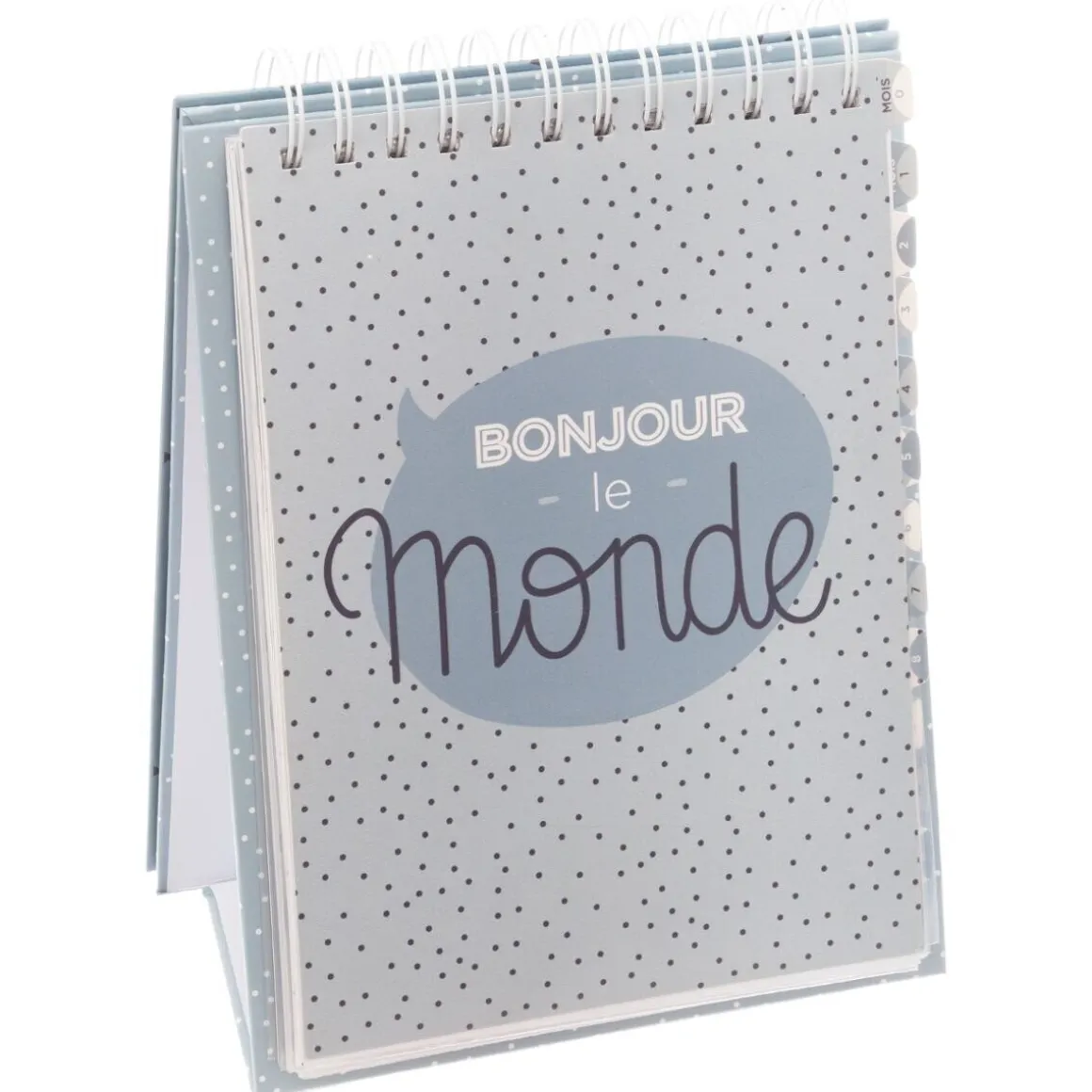 Cet album photo à spirales enfant se distingue par un format original. Vertical, il tient debout et dispose d’une couverture cartonnée et décorée de motifs délicats. Les pages sont articulées autour de spirales métalliques et des onglets classeront vos souvenirs par mois. Vous pourrez y consigner des photos et des notes.