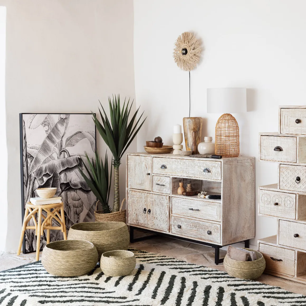 Installez votre applique murale « Tea » près d’une console en bois de manguier Atmospheraet profitez d’un ensemble harmonieux!