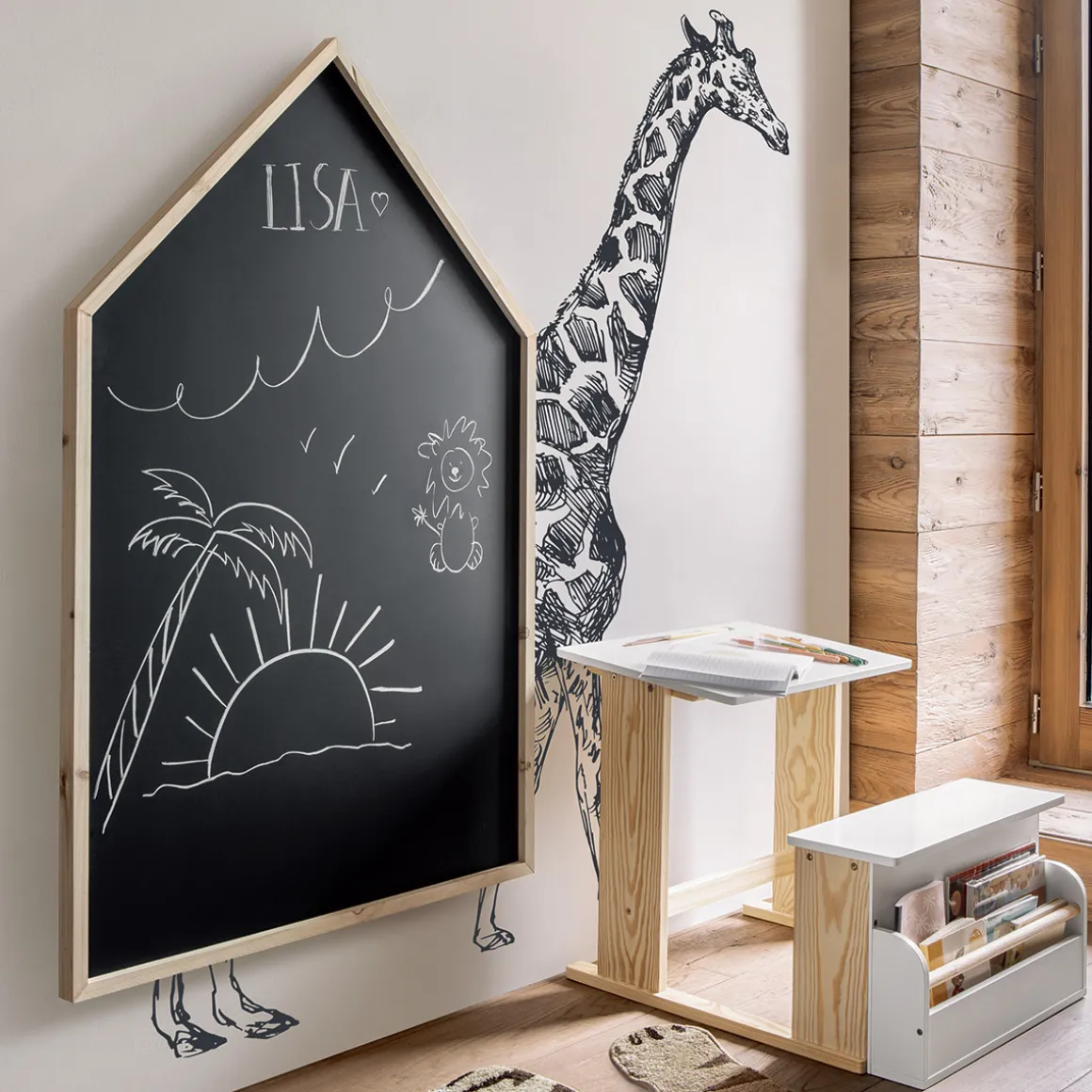 L’ardoise « Maison » est à la fois un objet de décoration et un tableau sur lequel votre enfant pourra exercer sa créativité. Les montants sont en bois massif, pour une touche esthétique supplémentaire et une robustesse accrue.
