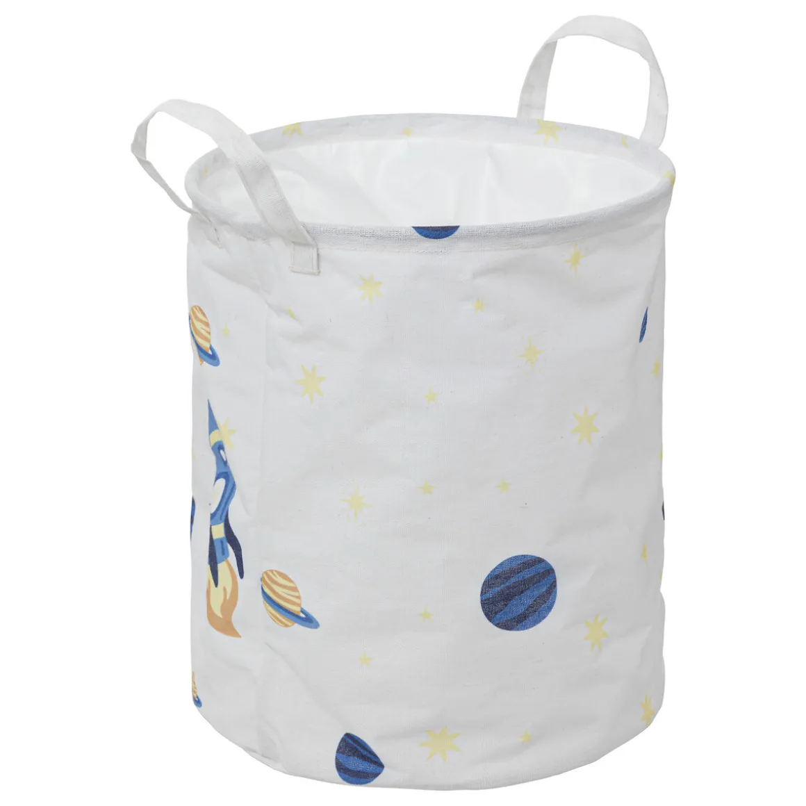 Ce spacieux panier en tissu est orné de fusées, d’étoiles et de planètes. Il sera idéal pour accueillir des jouets, des peluches ou des vêtements. Par ailleurs, il ajoutera un peu de fantaisie dans la décoration d’une chambre d’enfant.