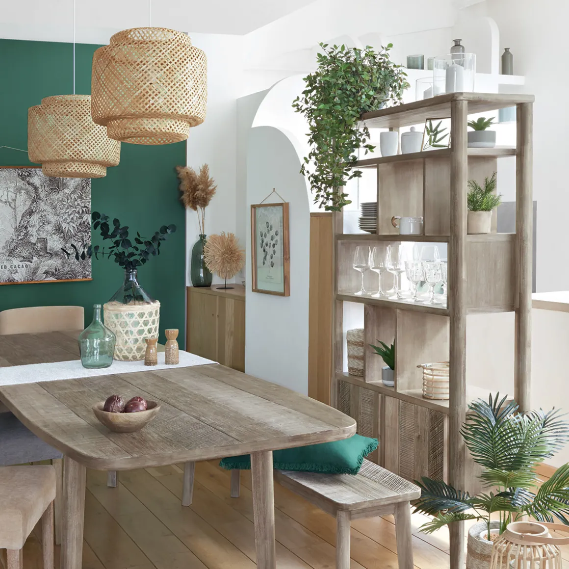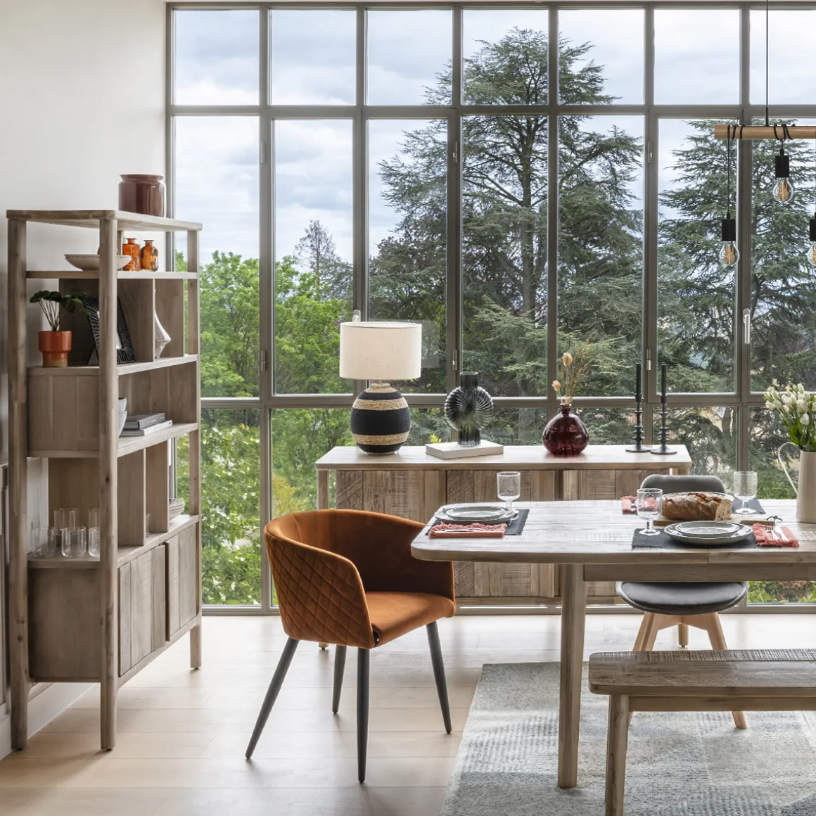 Pour un esprit campagne chic, détournez cette bibliothèque en vaisselier tendance. À la place de livres, exposez de jolis bols en faïence, une collection de pichets et des verres aux formes décoratives.