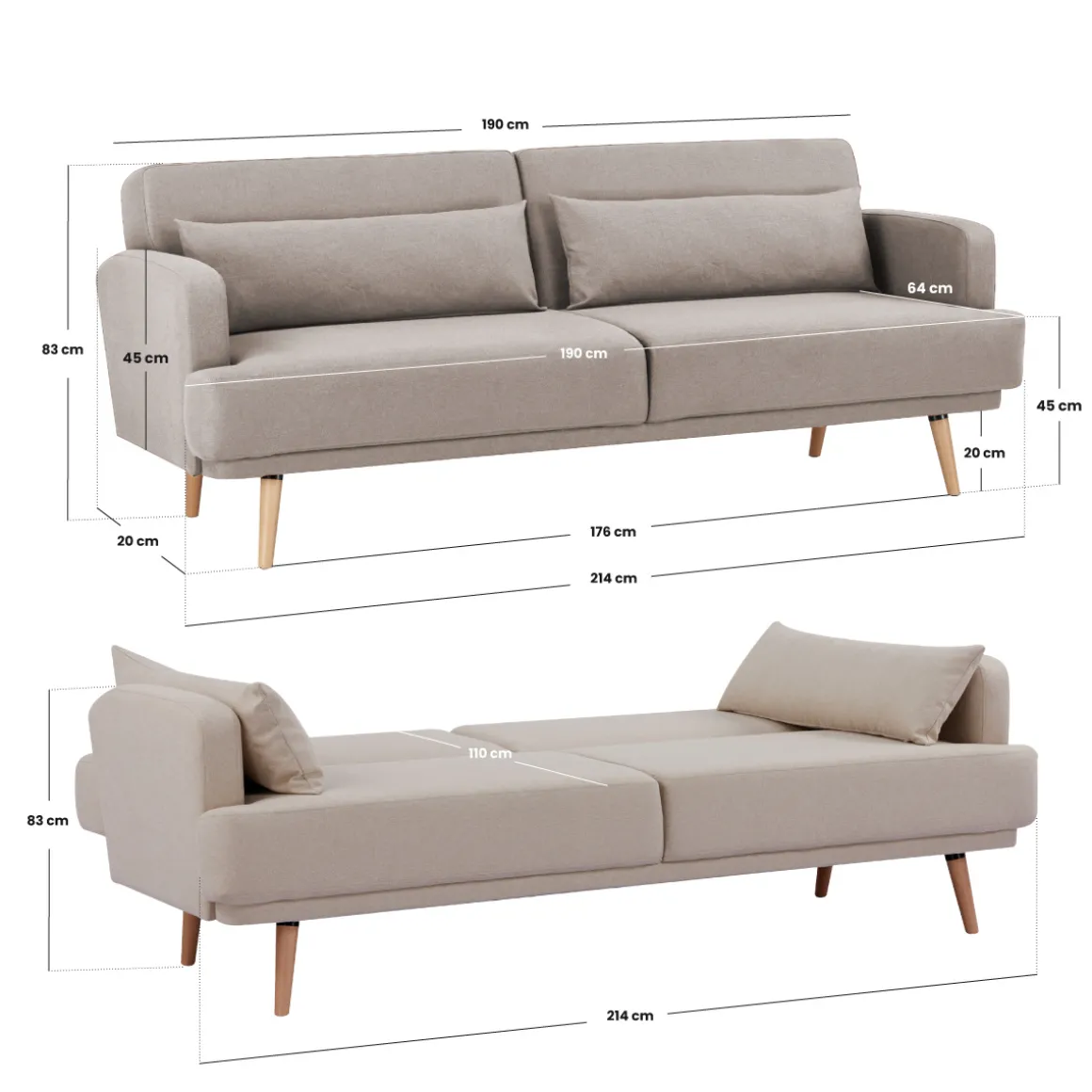Trois personnes pourront se lover sur ce canapé convertible. Sa mousse polyuréthane assure une assise ou un sommeil en tout confort. Avec ses dimensions généreuses et son style élégant, c’est un canapé tout trouvé pour créer une ambiance cosy. Vous noterez également ses jolis pieds en hêtre qui allègent sa silhouette.