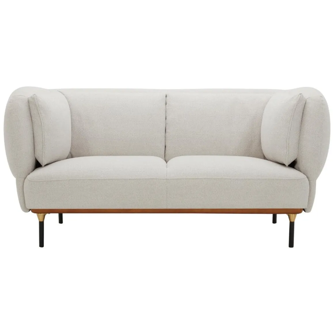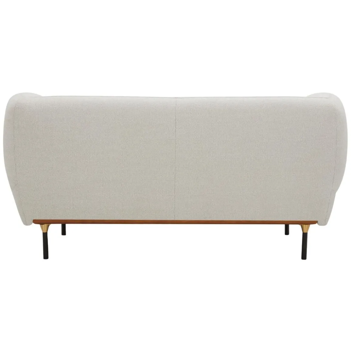 Le corps de ce canapé deux places est posé sur quatre pieds en fer très fins qui lui apportent toute son élégance. Les formes arrondies du dossier et des accoudoirs accentuent son côté chic et glamour.