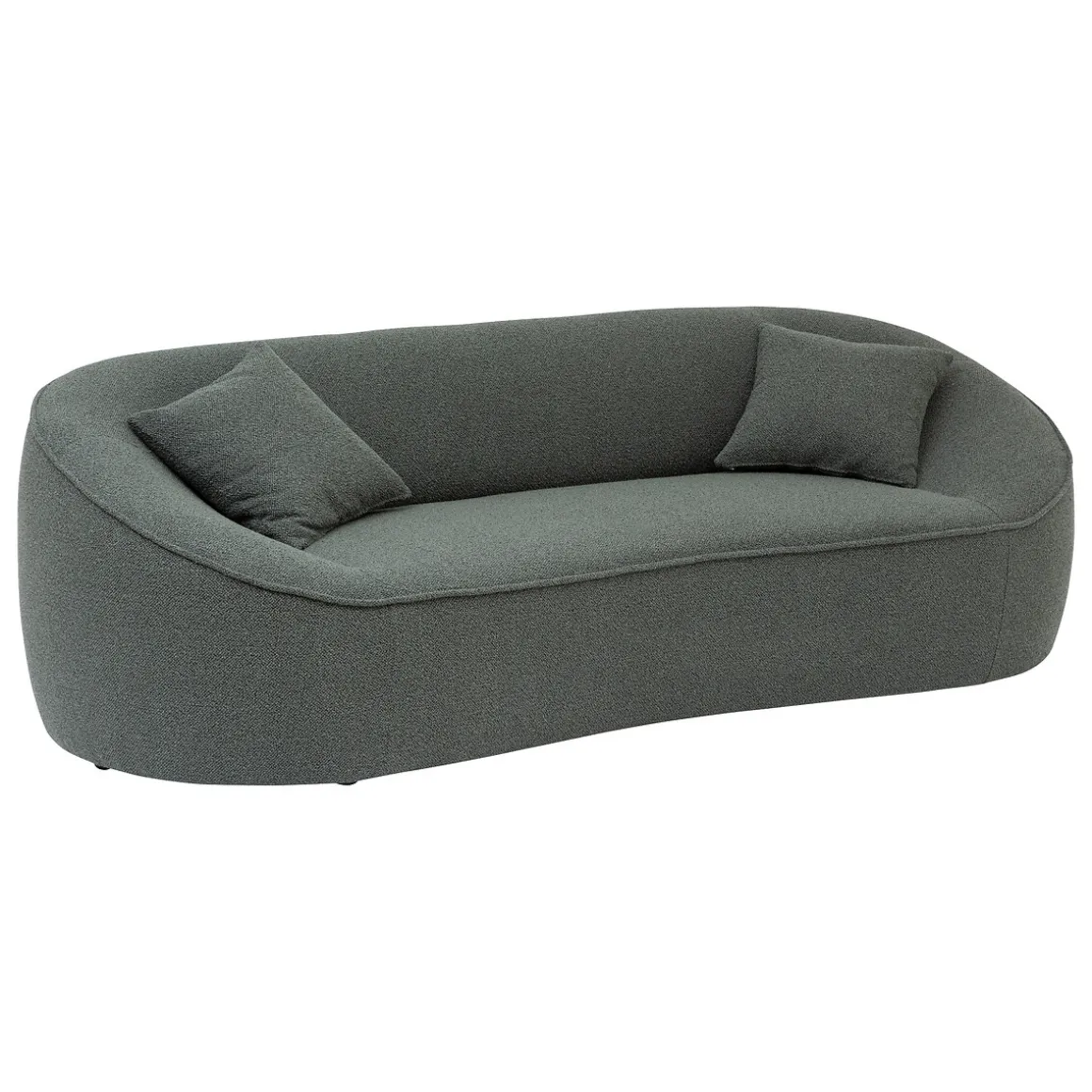 Fabriqué en France, ce canapé de forme organique accueillera volontiers jusqu’à trois personnes. Ses courbes arrondies et son revêtement en bouclette seront idéaux pour profiter de moments de repos. De plus, deux coussins apportent un confort supplémentaire à l’ensemble.