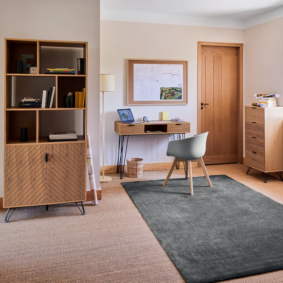 Pour meubler un coin de chambre ou de salle de bain, rien de tel que le chiffonnier « Naomi ». Il est en fibres de bois avec un placage en frêne et possède des pieds graphiques en métal. Ses lignes esthétiques s’adapteront très bien à un décor contemporain.