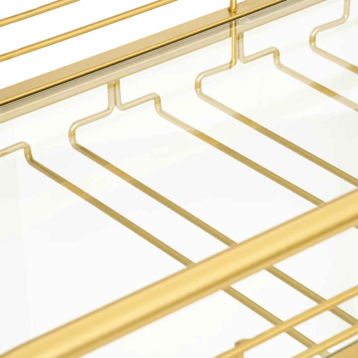 Les deux plateaux rectangulaires en verre trempé possèdent des rebords pour éviter une chute d’objets. De plus, la desserte « Antonella » est dotée d’emplacements spéciaux pour des verres afin que les liquides ne se renversent pas.