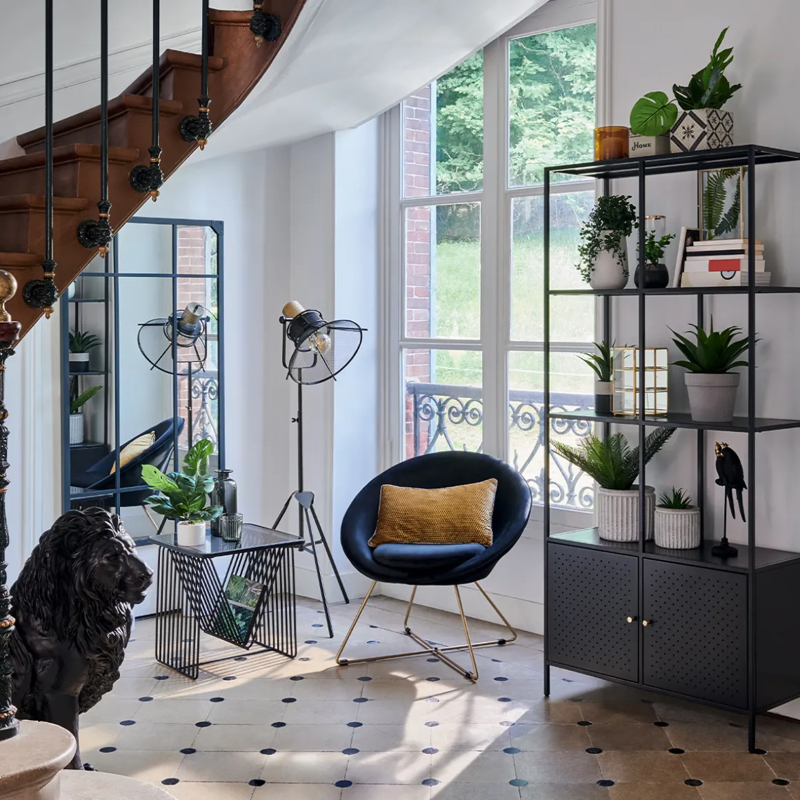 Le velours et le métal se combinent harmonieusement et créent un meuble élégant à l’allure vintage. Ainsi, sa forme ronde est sublimée par ses pieds fins et solides.
