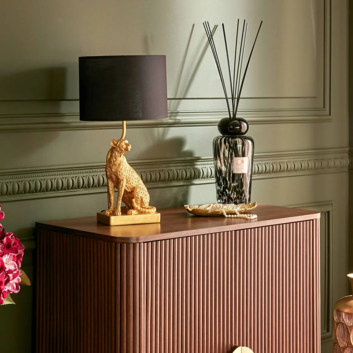 La lampe à poser Gepi Atmosphera se distingue par son pied en acier teinté effet laiton, rehaussé de la sculpture d’un léopard en résine dorée. Un abat-jour en tissu foncé vient sublimer l’ensemble pour un rendu à la fois élégant et féminin. La couleur de l’abat-jour produira une lumière chaleureuse selon l’intensité d’ampoule choisie et vous pourrez installer cette lampe sur une console ou sur un buffet en bois. Placée sur un bout de canapé, cette lampe vous procurera un éclairage agréable pour vos pauses lecture et vos soirées entre amis. Choisissez des objets déco Atmosphera à l’effigie de cet animal pour harmoniser !