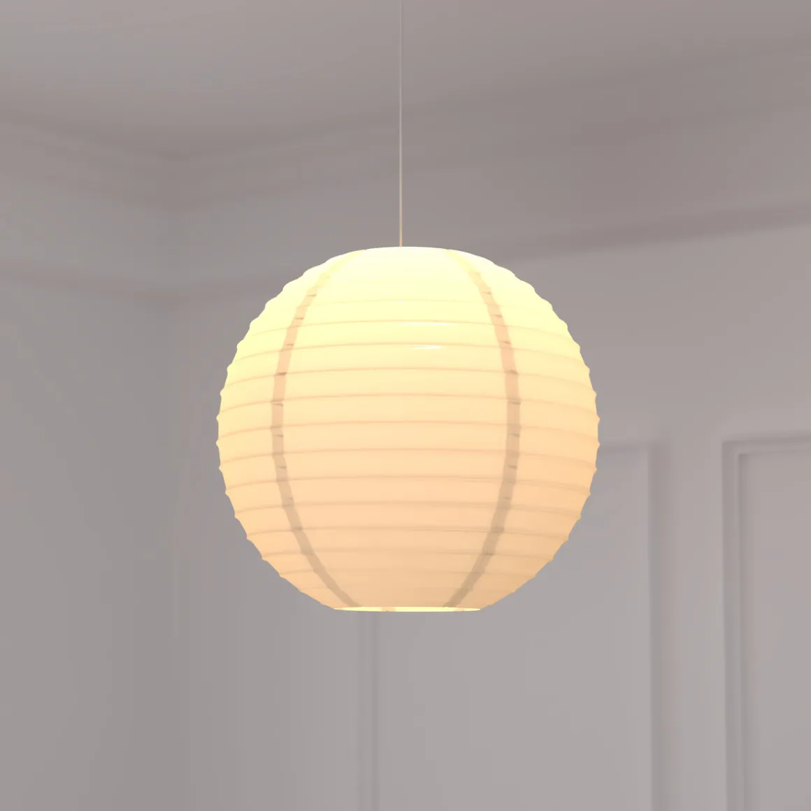 Cet abat-jour en boule de papier dispose d’une structure solide en fer.