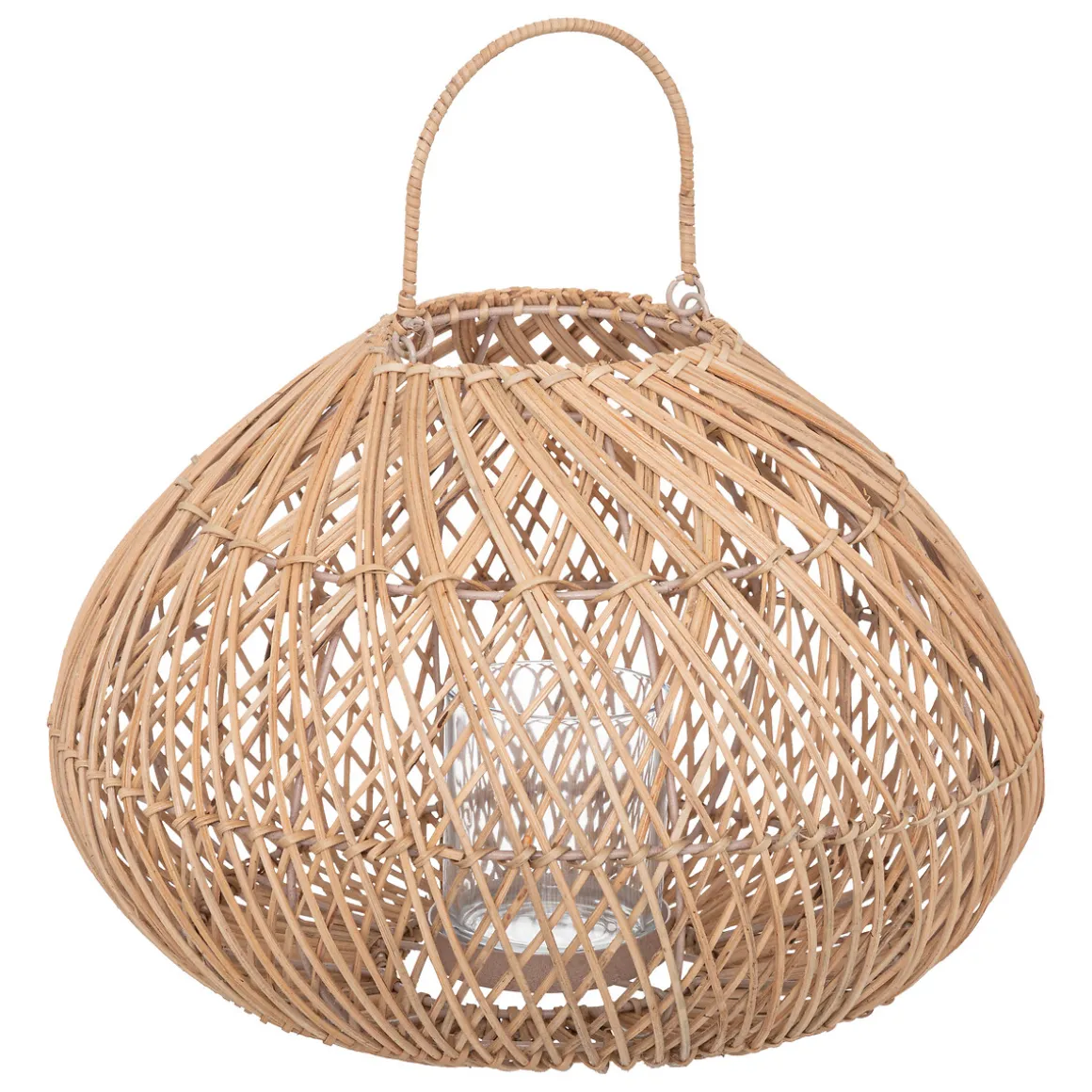 Composée d’une structure métallique entièrement tressées de tiges de rotin, la lanterne « Lour » est équipée d’un photophore en verre en son centre. Nomade, elle se déplace facilement grâce à une anse.