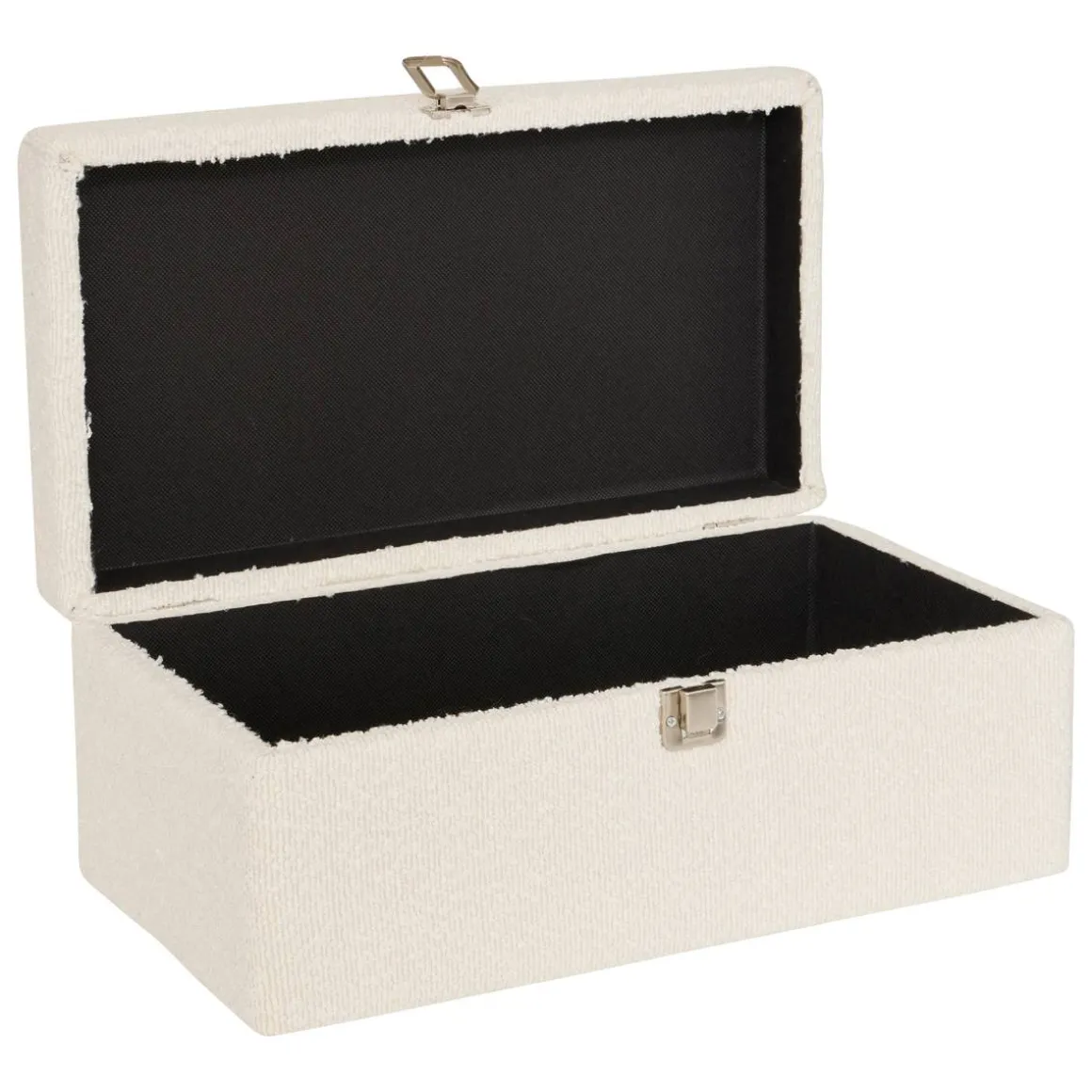 Le set de 3 malles Carlie Atmosphera est composé de 3 malles rectangulaires de dimensions différentes qui peuvent être empilées. Habillées de tissu bouclette, elles offrent un généreux volume de rangement, idéal pour stocker des effets, des accessoires ou du linge de maison comme des plaids ou des coussins. Installez ces malles dans une chambre à coucher pour créer une ambiance chaleureuse ou exposez-les dans une pièce de vie, associées à un tapis en coton et à du mobilier en bois clair. Harmonisez votre déco en choisissant des accessoires déco ou des assises en bouclette Atmosphera !