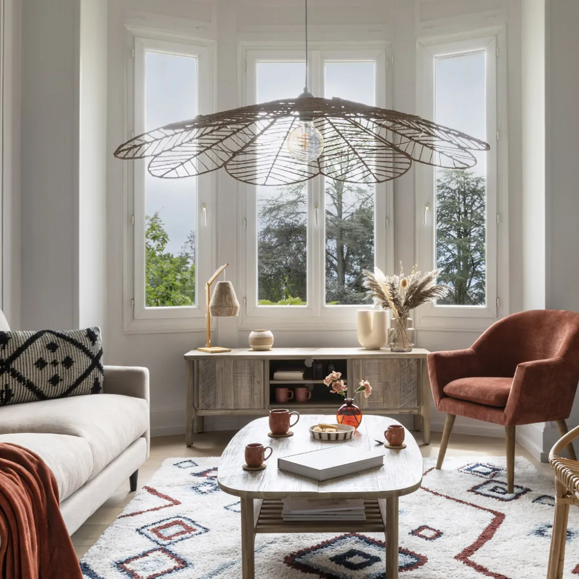 Pour aménager un coin accueillant et chaleureux, il vous suffira d’ajouter au pied du meuble TV « Banila » un tapis imprimé et quelques coussins de sol Atmosphera.