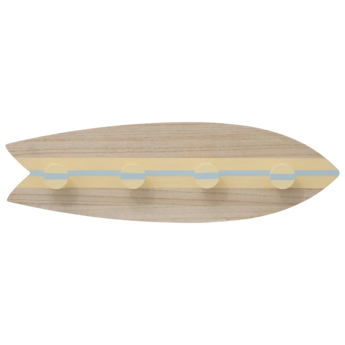 Très originale, la patère enfant « Rhon » reprend la forme d’une planche de surf. Elle est confectionnée en fibres de bois qui lui donnent un air brut et naturel. Les quatre crochets solides permettront à votre bout de chou d’y suspendre des vêtements ou des sacs légers.