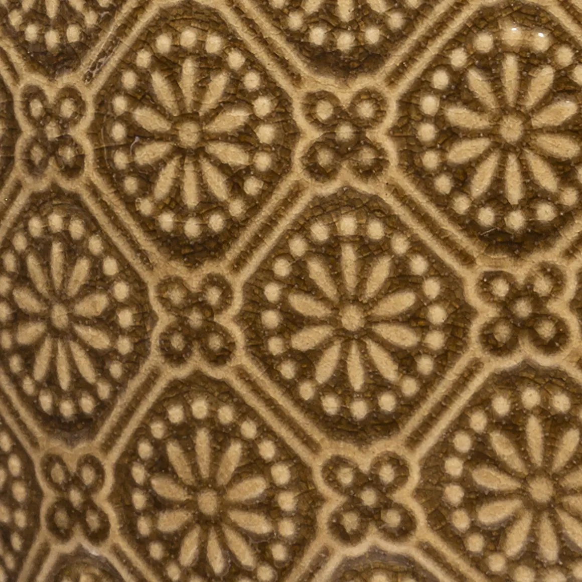 Ce charmant cache-pot en grès se distingue par ses petits motifs géométriques. Placées à l’intérieur, vos compositions florales auront tout de suite fière allure. Grâce à sa taille compacte, le pot pourra être posé sur une étagère ou une bibliothèque.