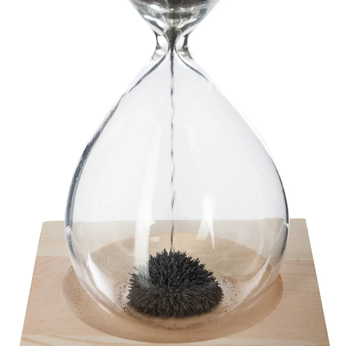 Haut de 15 cm, ce sablier « Chic » est constitué d’un socle en pin sur lequel figure un aimant. Le contenant en verre est rempli d’un sable composé de métal qui formera des compositions inattendues en tombant sur la partie aimantée. Ludique et esthétique, il trouvera sa place dans une cuisine comme dans un salon.