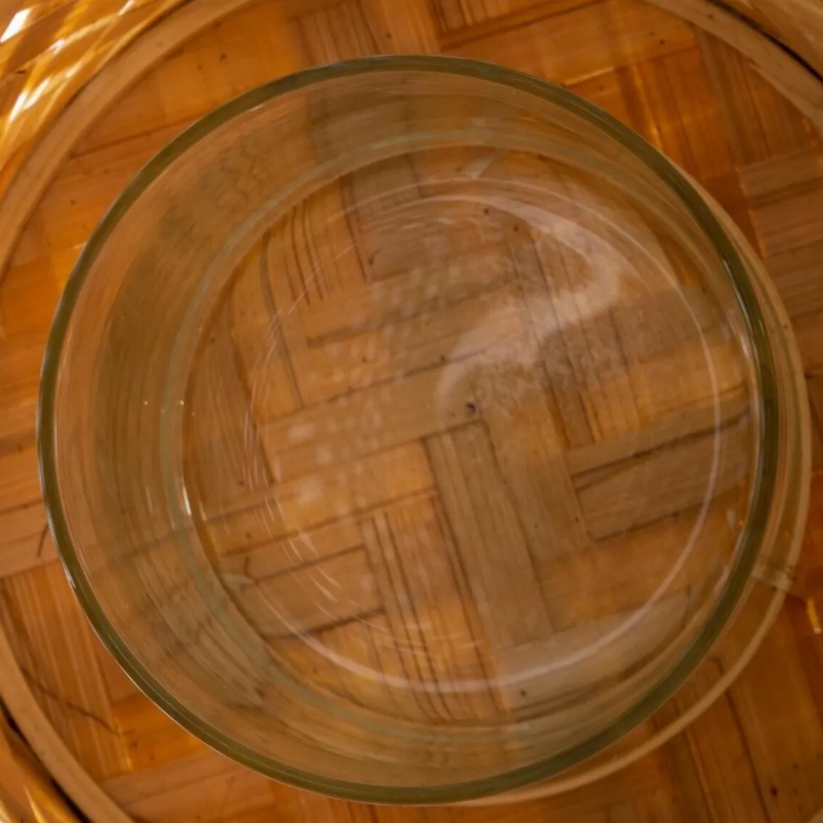 Ces lanternes sont réalisées dans une fibre naturelle, le bambou tressé. Elles disposent chacune d’une poignée et d’un photophore en verre protégeant la bougie des courants d’air.