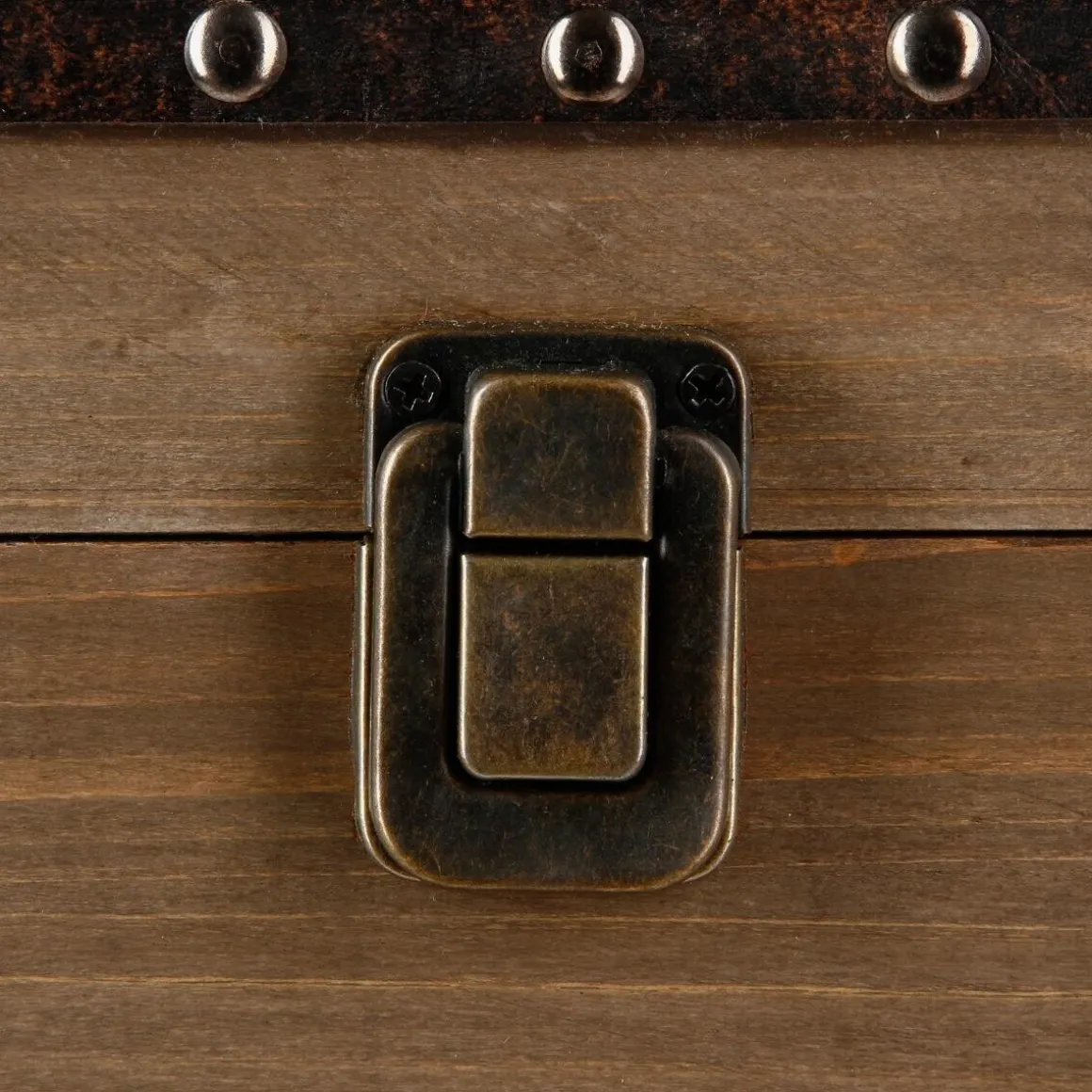 Forme rectangulaire, cornières métalliques cloutées, vieux fermoir en fer : l’esprit industriel de ces malles « Retro Factory » nous fait craquer. Les inscriptions en grosses lettres évoquent les anciennes malles de transport ainsi qu’un côté récup irrésistible.