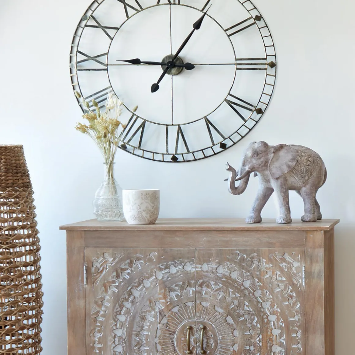 Placez cette statue d’éléphant « Jade » dans l’entrée, sur une console en manguier ou une commode en bois sculpté blanchi Atmosphera.