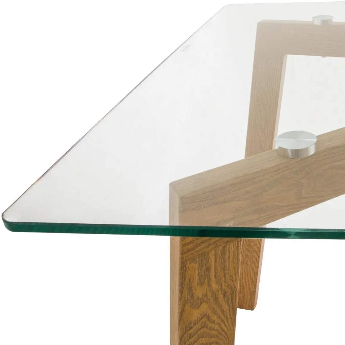 La table à manger « Taho » est un meuble contemporain aux accents scandinaves. Son grand plateau en verre trempé repose sur de solides pieds en acier habillé façon chêne. Ce design tout en finesse apportera légèreté et modernité à votre décoration intérieure.