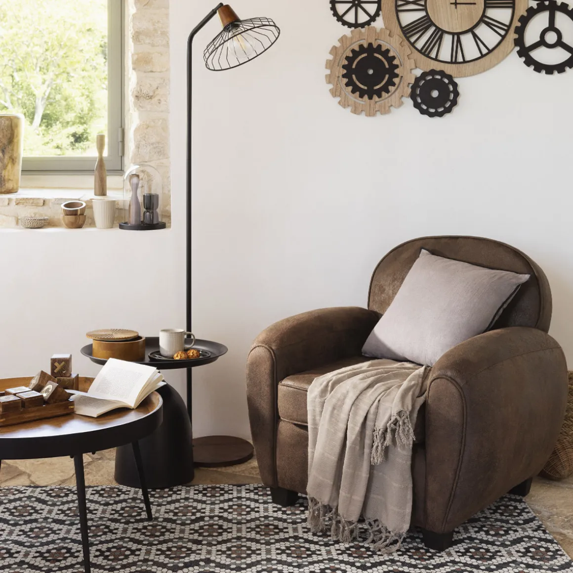 Tirez parti de l’esthétique géométrique de la table basse « Siwan » en la mariant avec un canapé à pieds biseautés ou des poufs ronds Atmosphera.