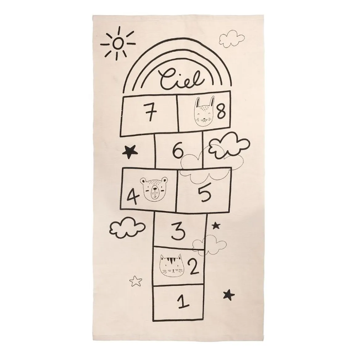Orné d’un motif de marelle grandeur nature, le tapis « Marelle » permettra à votre bambin de s’initier à ce jeu d’adresse ancestral. Plus besoin de craie, il aura accès à son jeu préféré toute la journée! De plus, il dispose d’un revêtement anti-glisse à l’arrière du tapis
