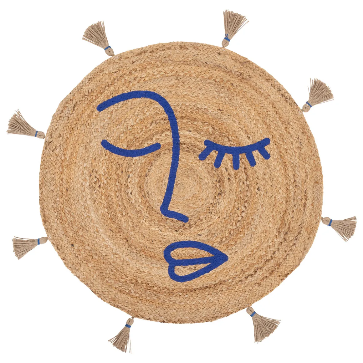 Confectionné en jute végétale, ce tapis rond se caractérise par le visage peint au centre. Il arbore également des pompons sur son contour pour lui donner encore plus de fantaisie. Par ailleurs, son design minimaliste conviendra parfaitement à un intérieur aux accents contemporains.