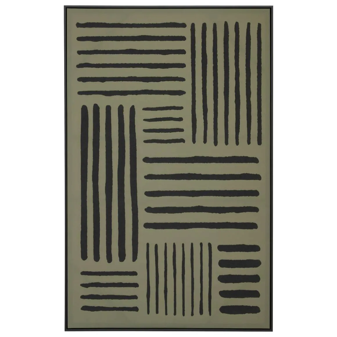 Elle est montée dans un cadre en bois certifié FSC® et se caractérise par des motifs minimalistes réalisés à la peinture acrylique. Installez votre toile peinte encadrée Roshan au-dessus d’une console Atmosphera et mettez-la en valeur avec une lampe.