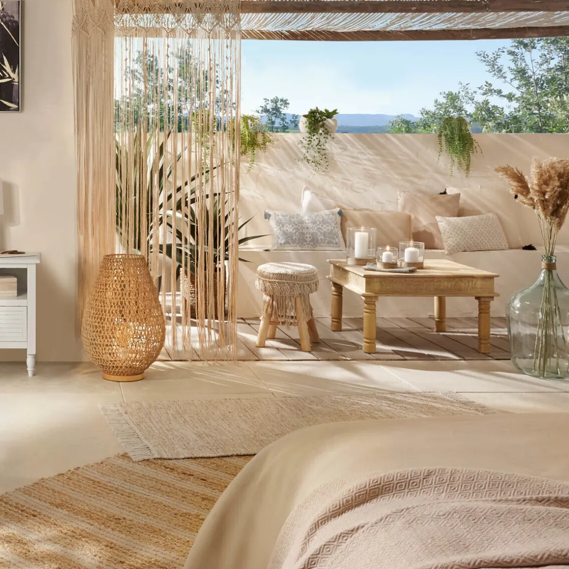 Entourez le vase d’une guirlande LED et glissez-y un bouquet de fleurs séchées Atmosphera pour un ensemble décoratif des plus harmonieux.
