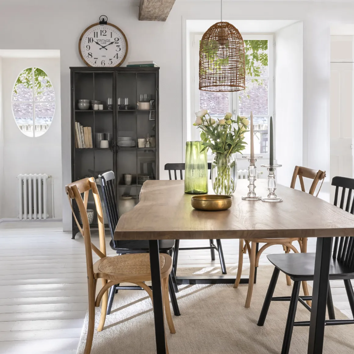 Choisissez une suspension en rotin pour éclairer votre vase et jouer sur des variations de couleurs grâce au verre teinté.