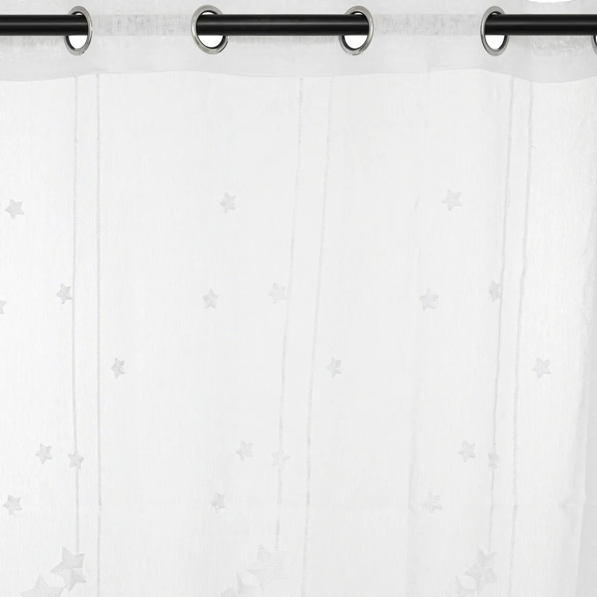 Léger et tout en transparence, le voilage enfant « Etoiles » vous permettra de créer de l’intimité dans une pièce sans occulter le passage de la lumière. Doté d’oeillets métalliques, il se fixe très simplement sur une tringle et se lave en machine. Brodé de petites étoiles ton sur ton, il déposera une touche ludique dans votre déco!