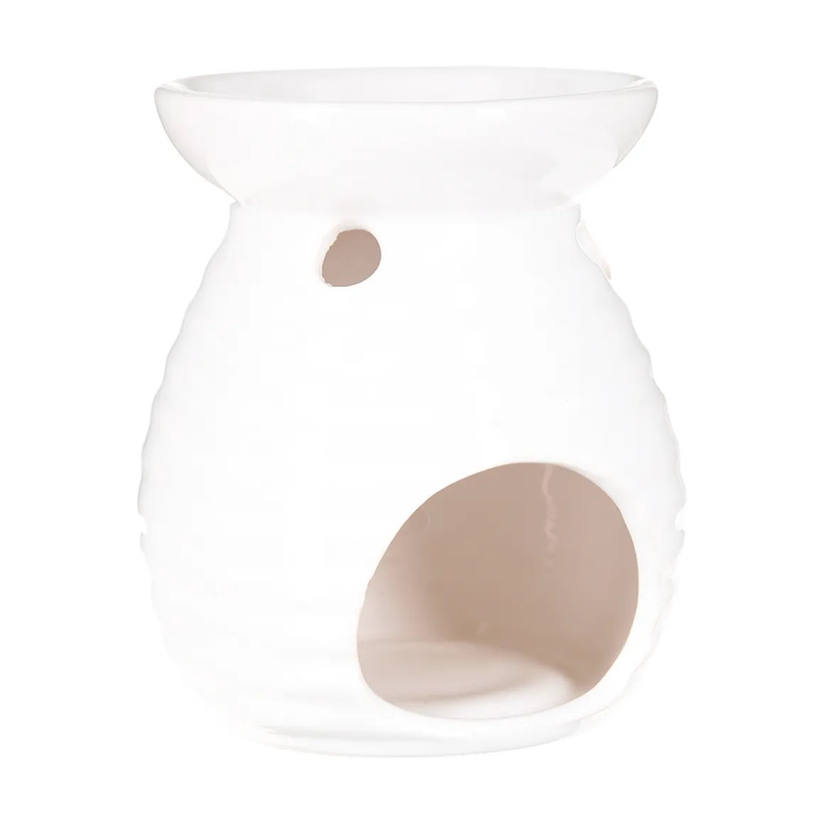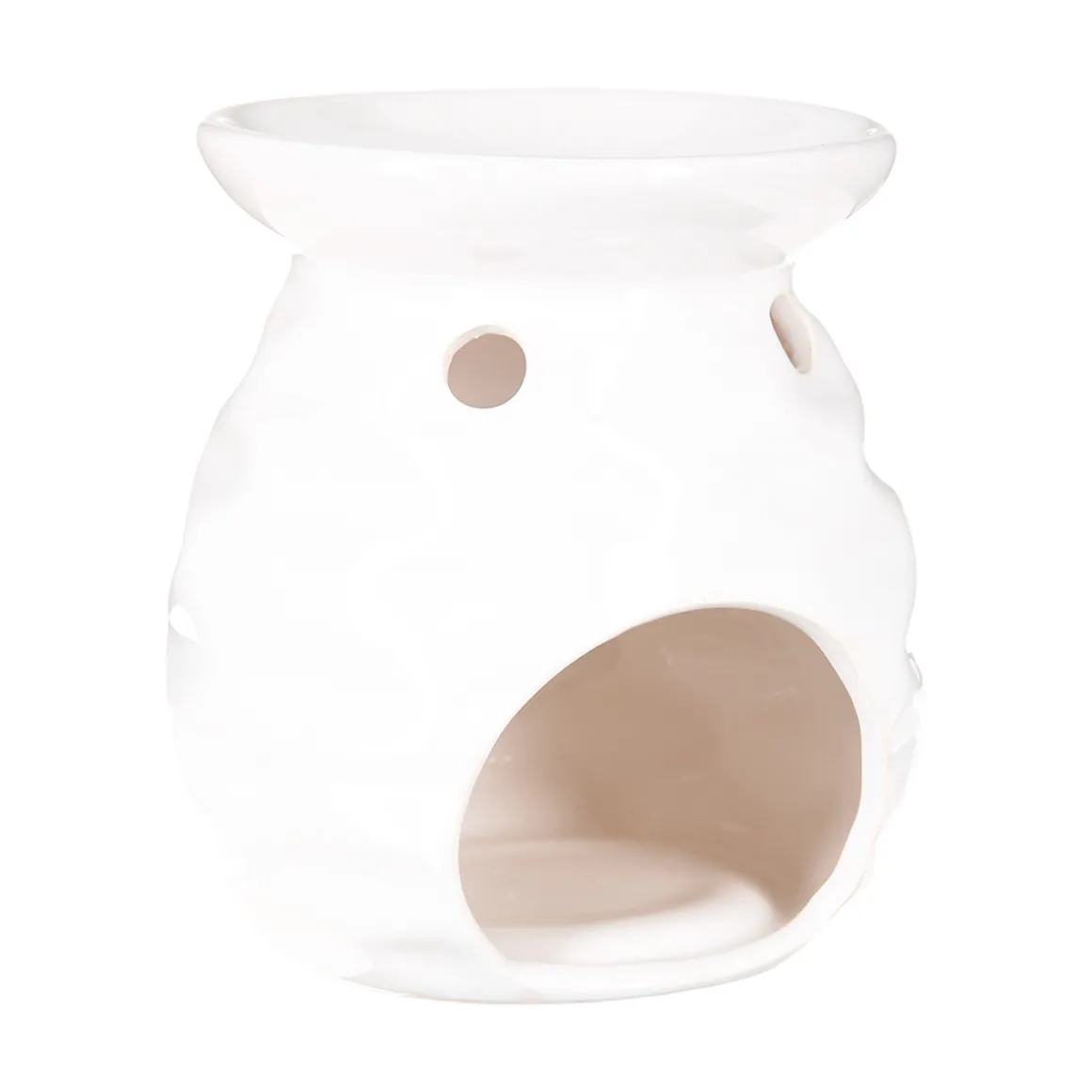 Ce brûle-parfum est fabriqué en céramique. Pour l’utiliser, vous devrez mettre à l’intérieur une bougie* chauffe-plat. Grâce à la flamme, elle diffusera l’odeur du liquide que vous aurez placé dans la coupelle sur le dessus. Vous pourrez ainsi profiter d’une senteur agréable et d’une petite lumière tamisée.