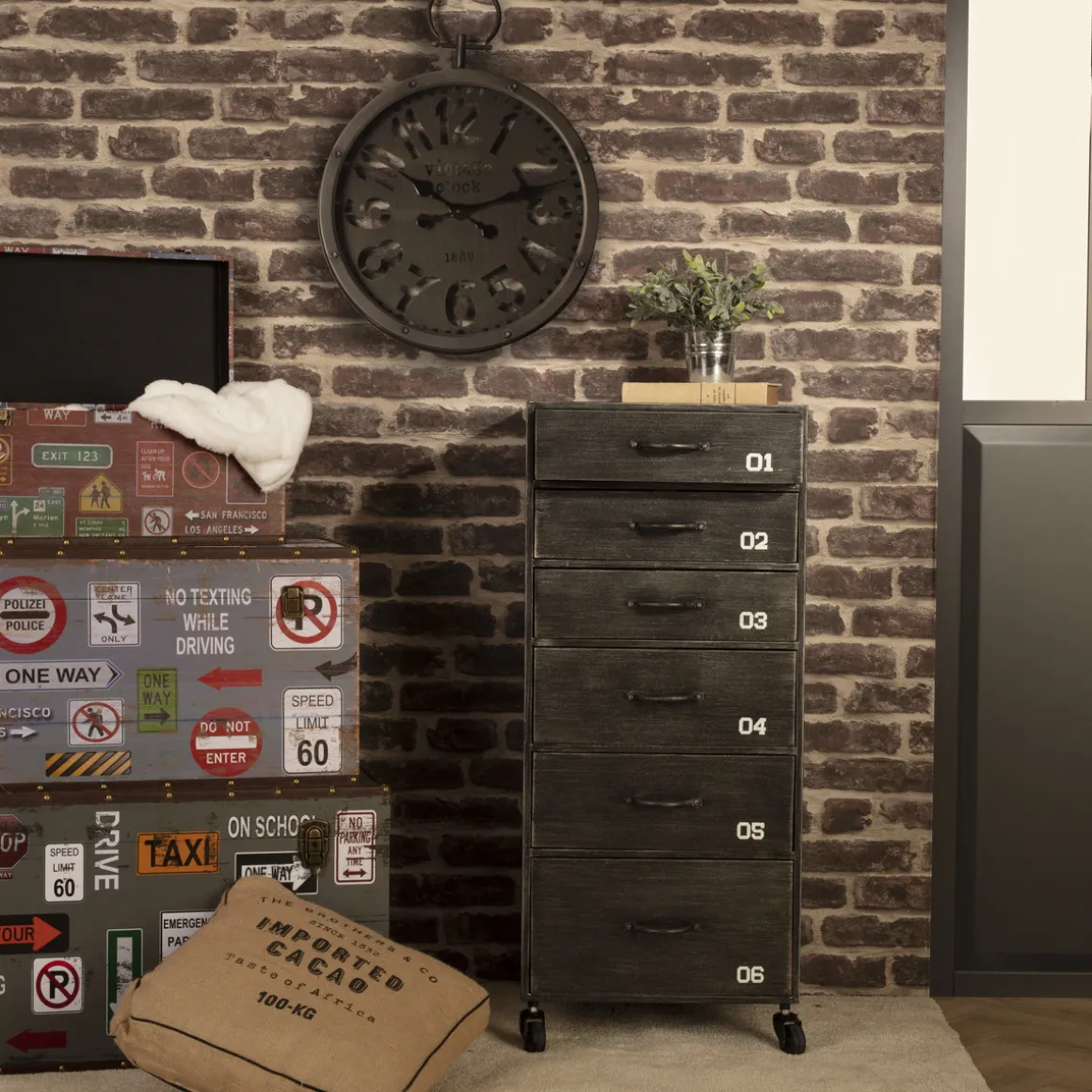 Le chiffonnier « Sevin » est une commode en métal à six tiroirs, pratique et solide à la fois. Sa structure en métal vous offre la possibilité de ranger tous types d’objets.