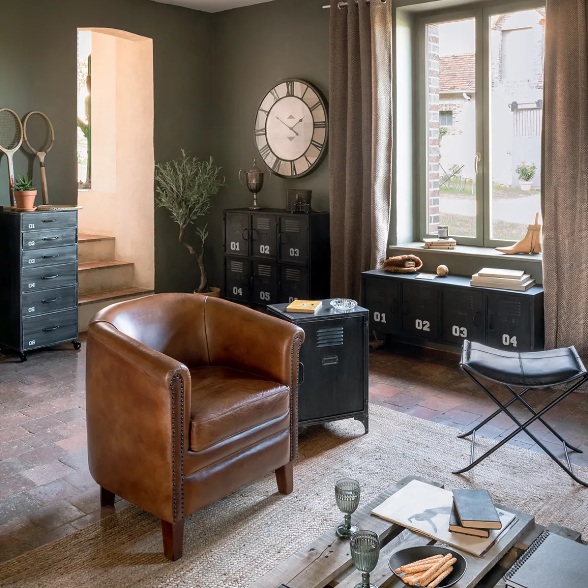 Assumez le style rétro vintage jusqu’au bout en associant le chiffonnier « Sevin » à la console « Tedy » en métal et bois.