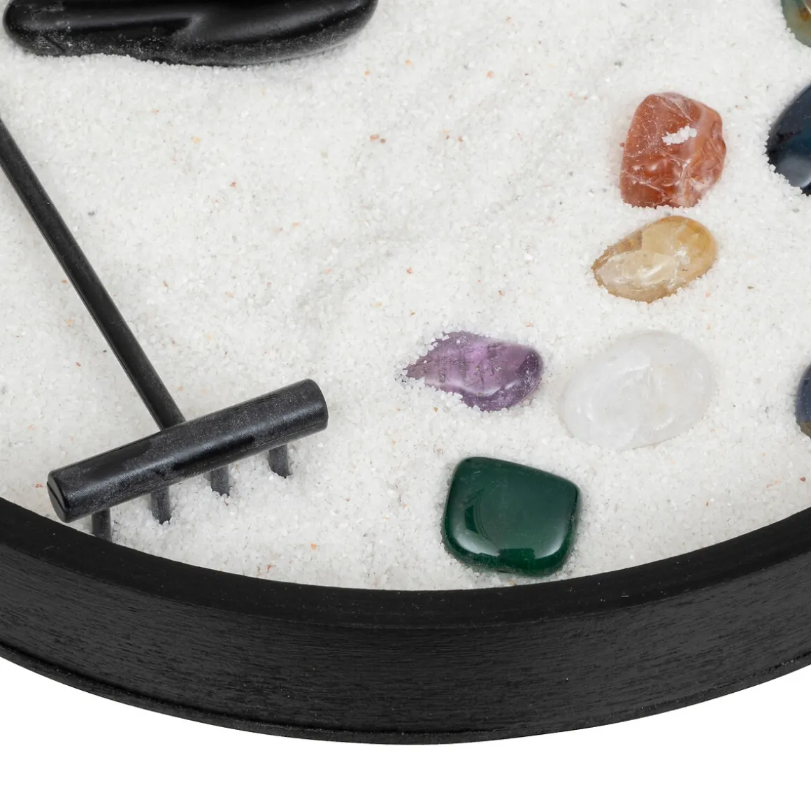 Le jardin zen « Isana » est l’accessoire idéal pour parfaire une déco d’esprit ethnique chic. Cylindrique et réalisé en bois foncé, il est tapissé de sable et accueille des pierres colorées, une statuette ainsi qu’un râteau qui permet de l’uniformiser.